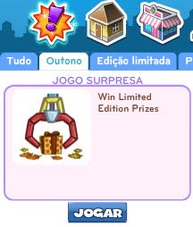 - Você pode entrar no Jogo Surpresa pela janela pop-up que aparece ao entrar no jogo, pelo painel no menu Construir ou em Especiais » Outono e selecionando o Jogo. Clique em Jogar para abrí-lo.