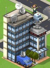 Clique no prédio para abrir a janela de atualização. Atualizando para o Nível 2 requer que você adicionar 10membros da tripulação. Uma vez que você tiver atualizado sua Torre de Televisão, você verá sua Torre de Televisão renovada! ( Os membros para a atualização podem ser adicionados, solicitando a ajuda de vizinhos ou com City Notas )