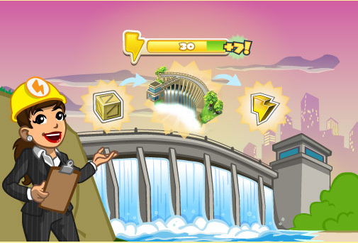 1. Agora que você tem a sua própria fonte de energia e deverá fornecê-la diariamente para aumentar sua energia no total máximo de até 7 pontos! Clique na Represa para fornecê-la com 400 produtos!