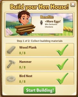 Para colher um galinheiro, basta clicar sobre ele. Se estiver faltando qualquer dos requisitos como não tendo suficiente galinhas ou ter que esperar um pouco mais de tempo, o jogo em si vai dizer o que você precisa, caso contrário você pode colher o galinheiro e receber os ovos.